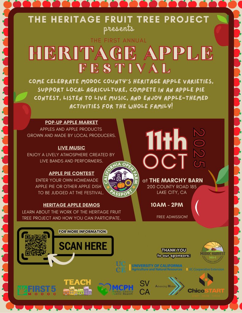 Why: to celebrate our specialty crop farmers and raise awareness of the Heritage Fruit Tree Project’s efforts to preserve Modoc County’s agricultural heritage